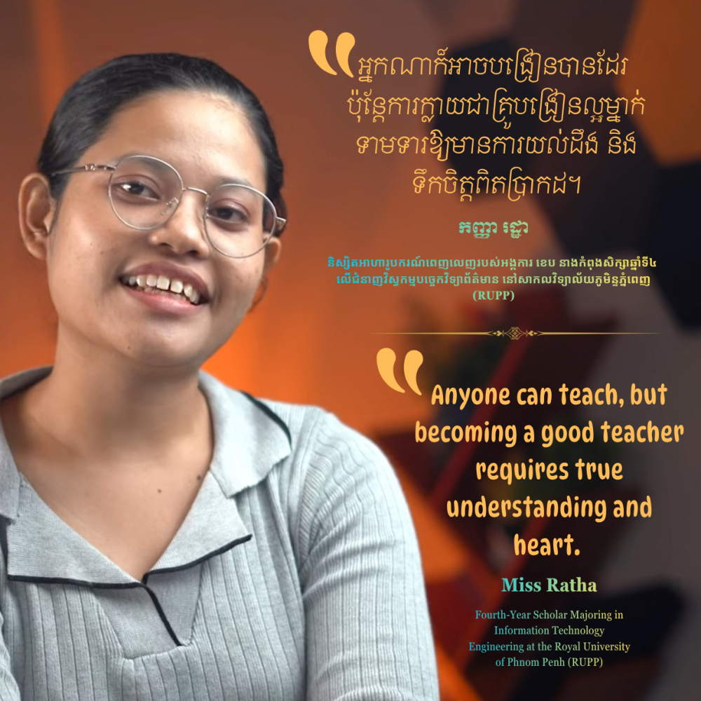 កញ្ញា រដ្ឋា គឺជានិស្សិតមួយរូបដែលមានដើមកំណើតមកពីខេត្តកំពង់ធំ មានភាពស្មោះត្រង់ និងឆន្ទៈមោះមុតក្នុងការសិក្សា។ ជានារីម្នាក់ដែលមានក្តីសុបិនខ្ពស់ក្នុងវិស័យបច្ចេកវិទ្យា រដ្ឋាបានជំនះឧបសគ្គជាច្រើនរហូតក្លាយជានិស្សិតអាហារូបករណ៍ពេញលេញរបស់អង្គការ ខេប។ បច្ចុប្បន្ន នាងកំពុងសិក្សាឆ្នាំទី៤ លើជំនាញវិស្វកម្មបច្ចេកវិទ្យាព័ត៌មាន នៅសាកលវិទ្យាល័យភូមិន្ទភ្នំពេញ (RUPP)។ ក្រោមការគាំទ្រហិរញ្ញប្បទានពីអង្គការមូលនិធិអាស៊ី (TAF) តាមរយៈអង្គការ ខេប មិនត្រឹមតែជាការជួយសម្រាលបន្ទុកគ្រួសារប៉ុណ្ណោះទេ ប៉ុន្តែវាគឺជាការបើកទ្វារនៃឱកាសឱ្យនាងអាចចាប់យកជំនាញដែលនាងស្រឡាញ់ និងប្រើប្រាស់ចំណេះដឹងទាំងនោះដើម្បីត្រឡប់ទៅជួយសង្គមវិញ។