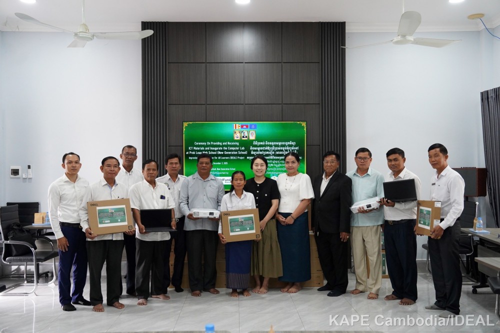 Mr. Hin Simhuon, Deputy Executive Director of KAPE, highlighted the strategic importance that “Integrating technology, especially Artificial Intelligence (AI) Literacy, into our education system is crucial for Cambodia’s educational reform. These resources will transform the classroom dynamic, shifting from traditional methods to inquiry-based learning and innovation. This is a vital investment to ensure our human resources are fully equipped with the skills needed for the 21st-century job market.”