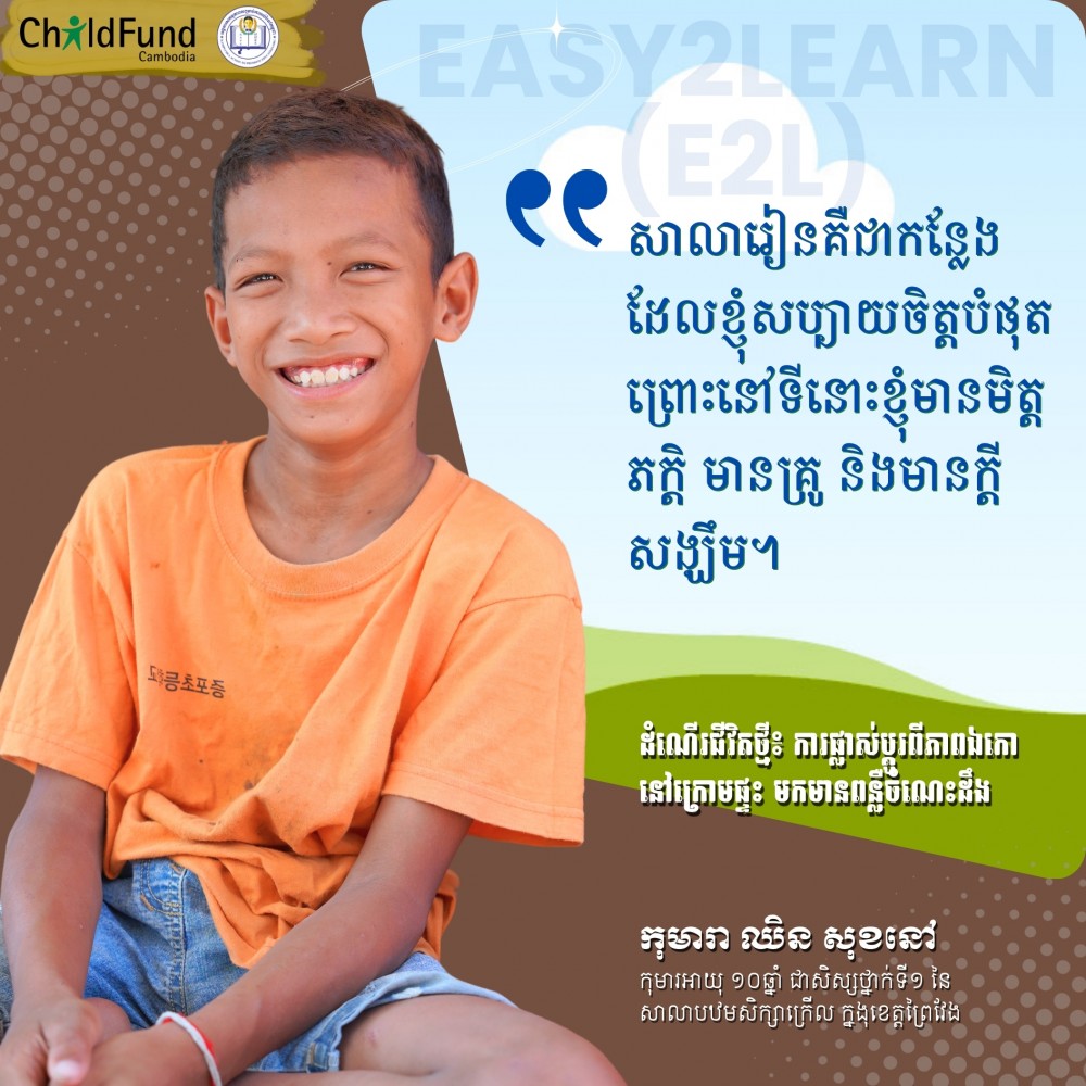 ក្រោយពីមានអន្តរាគមន៍របស់គម្រោង E2L ដល់សាលាបឋមសិក្សាក្រើល លទ្ធផលសិក្សារបស់សុខនៅមានភាពប្រសើរឡើង គាត់ក្លាហាននិយាយជាមួយសិស្សដទៃទៀត និងចូលរួមលេងល្បែងសិក្សាជាមួយមិត្តនៅសាលា។ ម្តាយសុខនៅបានជូនគាត់ទៅសាលារៀនរាល់ថ្ងៃ ទាំងវេណព្រឹក និងការរៀនបំប៉នពេលរសៀល។ លោក វន្ត ហឿន នាយកសាលាបឋមសិក្សាក្រើល បានមានប្រសាសន៍ថា “កុមារសុខនៅទទួលបានការលើកទឹកចិត្ត និងឱកាសចុះឈ្មោះចូលរៀនដូចសិស្សដទៃទៀត ហើយគាត់សប្បាយចិត្តខ្លាំងដោយបានស្គាល់មិត្តភក្រផ្សេងៗ និងមិនខ្លាច ឬខ្មាស់អៀនដូចមុន។ គាត់មកសាលារៀនទៀងទាត់ជាងមុន ហើយបើគម្រោងមិនជួយគាត់ទេ គាត់មិនបានមកសាលារៀនទេ”។