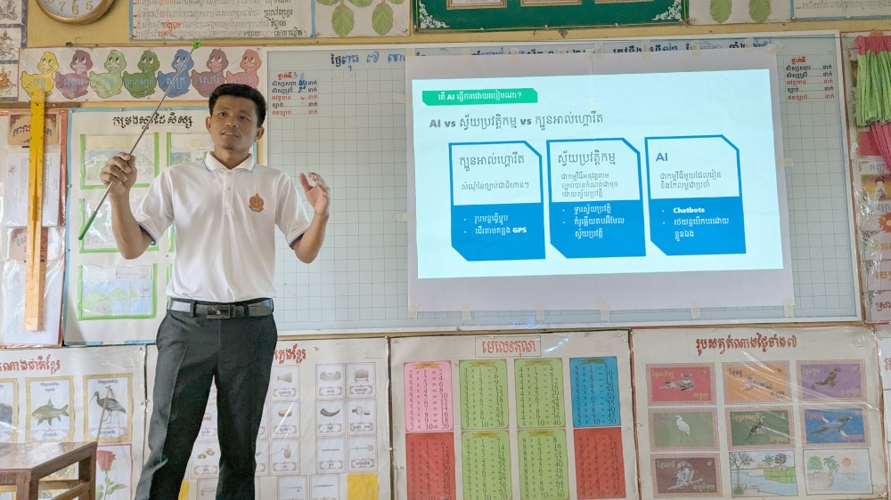 នៅក្នុងយុគសម័យដែលបច្ចេកវិទ្យាកំពុងរីកចម្រើនយ៉ាងឆាប់រហ័ស ការនាំយកចំណេះដឹងផ្នែកឌីជីថលទៅកាន់តំបន់ជនបទគឺជាកត្តាដ៏សំខាន់។ លោក អាន សុខអេង គ្រូបង្រៀននៅសាលាបឋមសិក្សាថ្កូវ ភូមិថ្កូវ ឃុំត្រប់ ស្រុកបាធាយ ខេត្តកំពង់ចាម បានក្លាយជាបុគ្គលគំរូមួយរូបក្នុងការនាំយកការផ្លាស់ប្តូរនេះ។ ក្នុងនាមជាគ្រូបង្គោល (Master Trainer) នៃ គម្រោង AI Ready ASEAN ដែលអនុវត្តដោយអង្គការ ខេប លោកមិនត្រឹមតែបានអភិវឌ្ឍខ្លួនឯងប៉ុណ្ណោះទេ ប៉ុន្តែថែមទាំងបានក្លាយជាស្ពានចម្លងចំណេះដឹងដ៏មានប្រសិទ្ធភាពទៅកាន់សហគមន៍គ្រូបង្រៀនរបស់គាត់ផងដែរ។