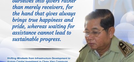 Date : 2014-03-27ការផ្លាស់ប្តូរផ្នត់គំនិតពីការអភិវឌ្ឍហេដ្ឋារចនាសម្ព័ន្ធ មកជាការវិនិយោគលើធនធានមនុស្ស នៅឃុំជ្រៃវៀន ន... អានបន្ត